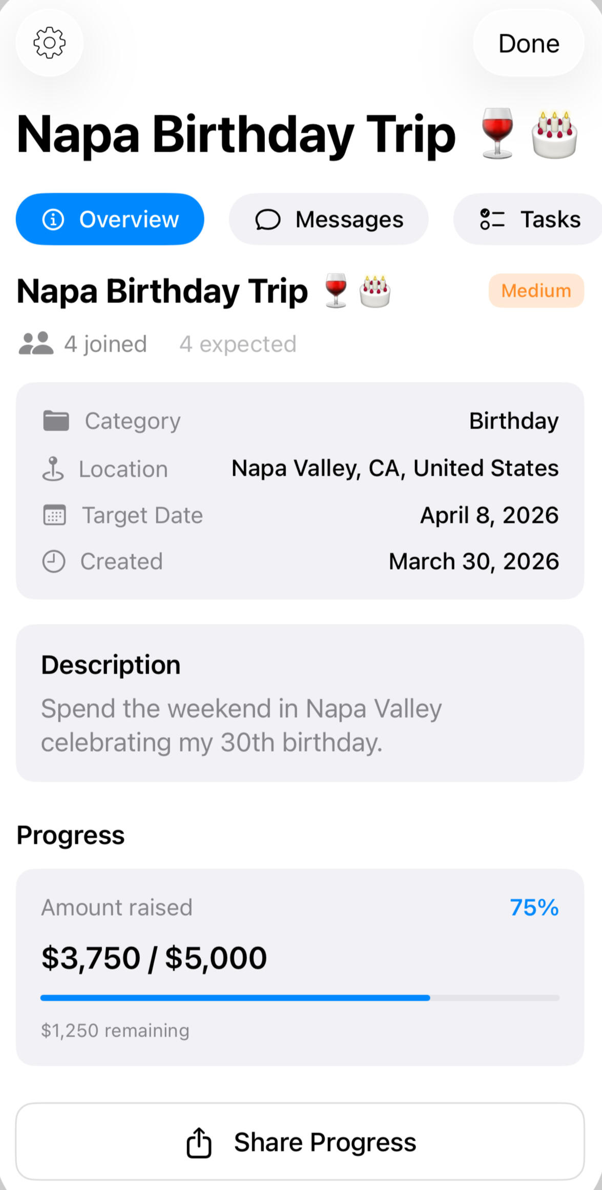 GoalExecution helps friends, families, and groups turn shared plans into real results. Whether you're planning trips, reunions, weddings, events, or shared purchases, keep everything organized in one place to ensure your goals actually get accomplished.